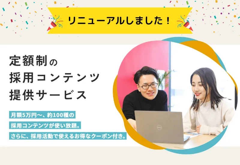 採用活動に使えるプロ品質のコンテンツを、必要なときに必要な分だけダウンロードできる月額制の採用コンテンツシェアリングサービスです。