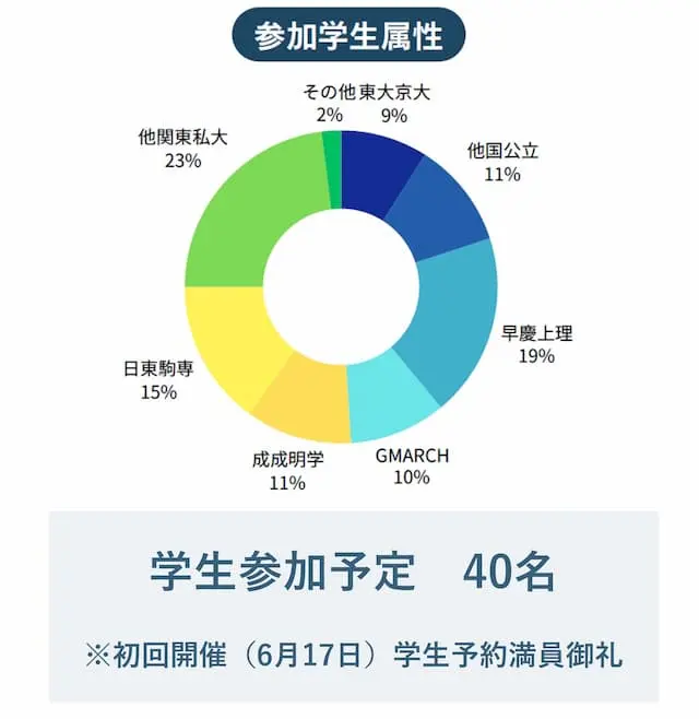 ・早慶・東大・京大・旧帝大・国公立・有名私大(MARCH・関関同立)などが多数参加