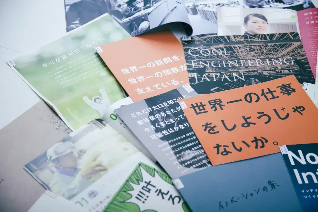 説明会で自社への入社意欲をぐっと高める入社案内や採用ムービーなど。