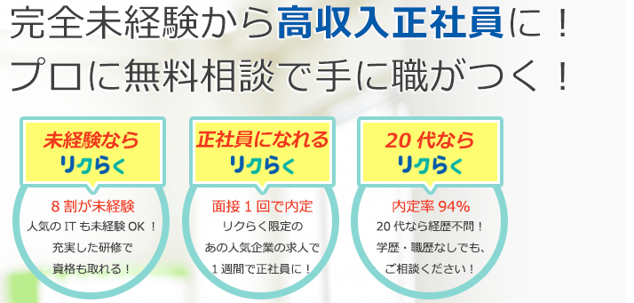 未経験でも応募できるIT求人が多いため、「手に職をつけたい」「成長領域で働きたい」と考えている方にもおすすめです。