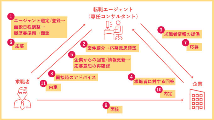 転職エージェントを利用するための登録から応募・内定までの流れを解説します。