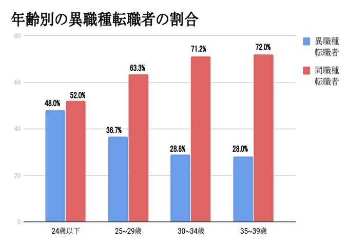 20代は、ポテンシャルや将来性が高く評価されるため、未経験職にも比較的有利に転職できる時期とされています。