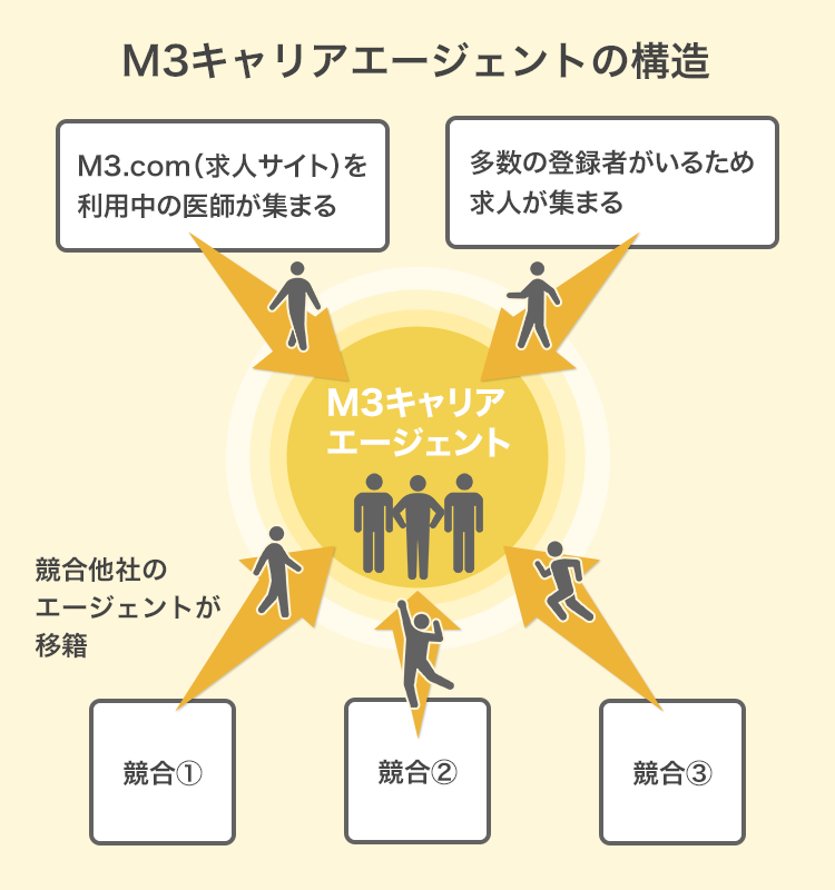 | 1位 | M3キャリアエージェント | ◎4.76 | 医師の登録実績9年連続NO.1* | 45,105件 |