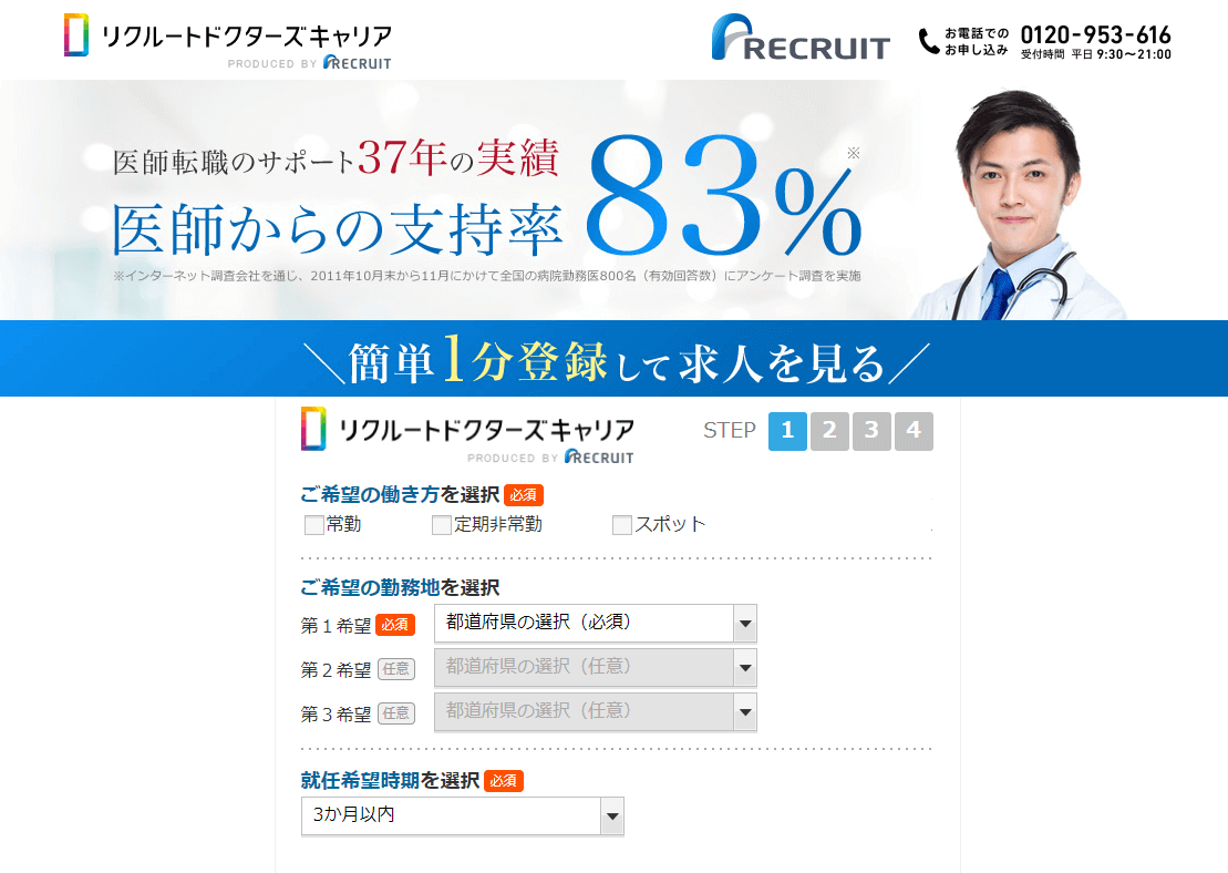 | 1位 | 医師転職ドットコム | ◎ 4.83 |