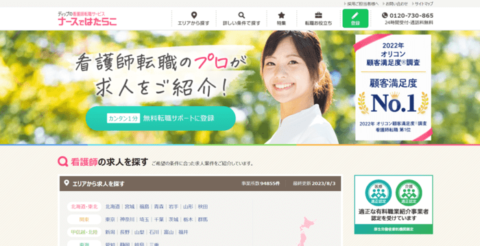 1位:看護roo!|転職後の満足度が高く関東・東海・関西に強い