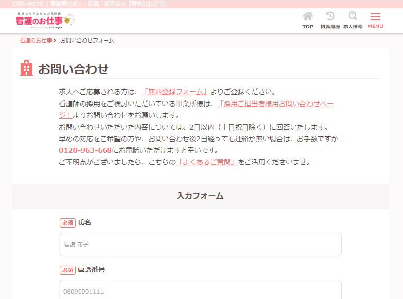 働きたい職場がすでに決まっているなら、その病院・施設の公式サイトのリクルートページを確認して応募しましょう。
