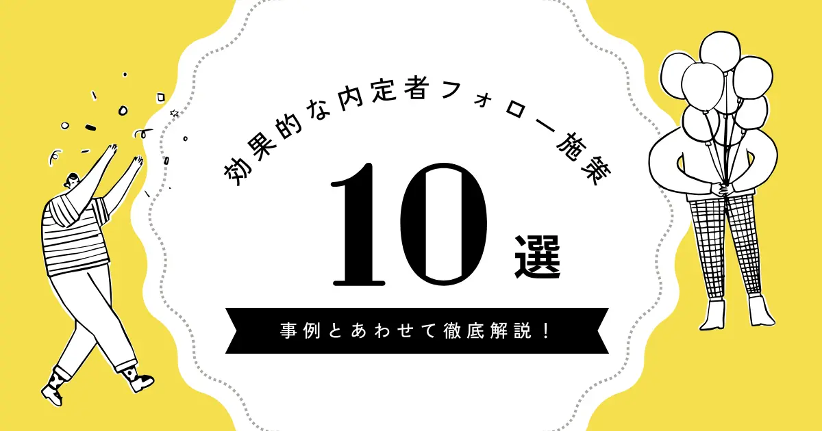 内定者フォローをおこなう際、効果があるのはどのような方法でしょうか。内定者フォローに有効だとされる、10の施策をお伝えします。