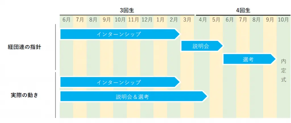 経団連が就活ルールを発表していたものの、優秀な学生は早くから就職活動をはじめたり、企業がそれに合わせて採用活動を早めたりした相乗効果で、採用市場は全体的に早期化が起こっていました。