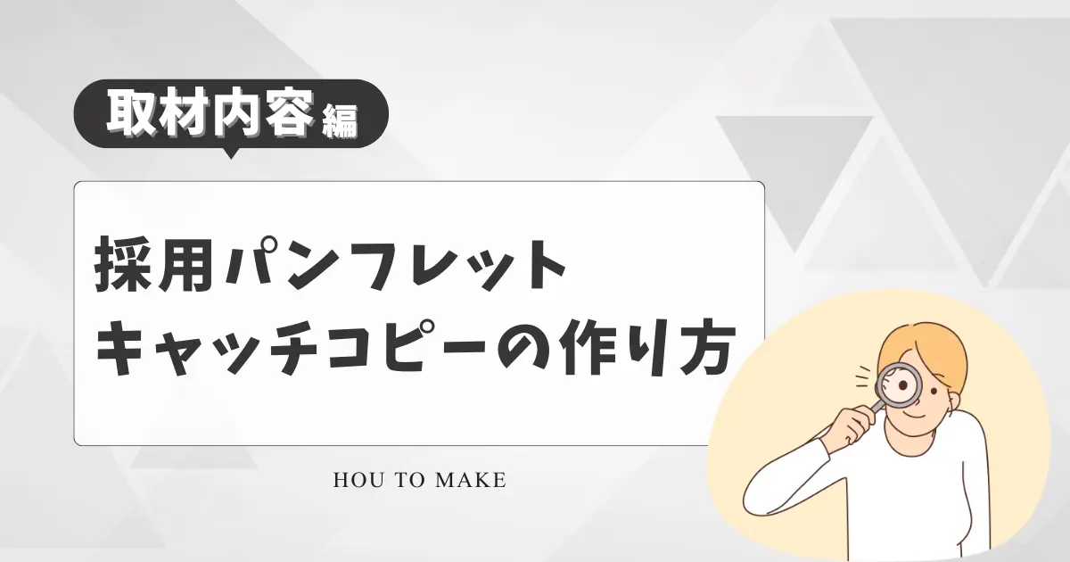 上記の項目を質問すると、採用パンフレットのキャッチコピーを作るのに必要な材料は大体揃います。