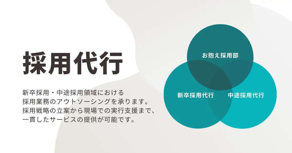 キャリア15年以上の新卒や中途など各分野のスペシャリストが貴社の課題に合わせてチームを組み事業計画の実現に向けた採用戦略の立案〜実行までをほぼすべてコミットするサービスです。