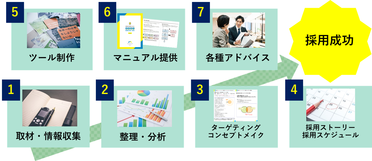 採用成功までのストーリーをイチから作り上げご提案いたします。