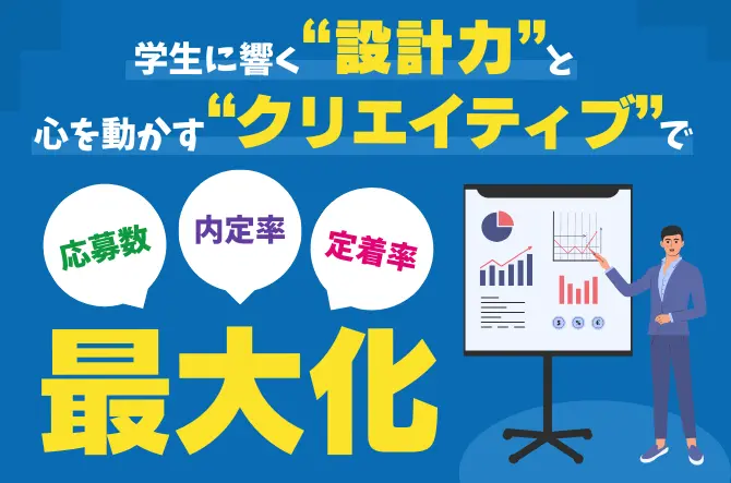 採用戦略立案からインターン・説明会・選考企画、採用サイトや動画制作、内定者フォローまで、