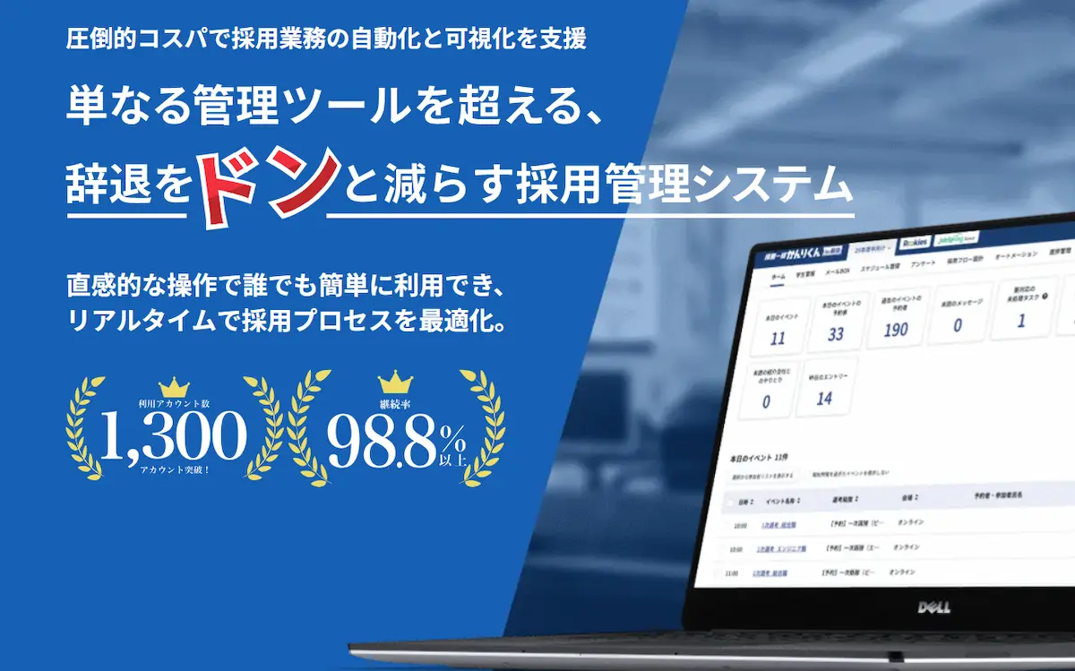 新卒採用・中途採用をひとつのクラウドシステムで管理できる「採用一括かんりくん」。