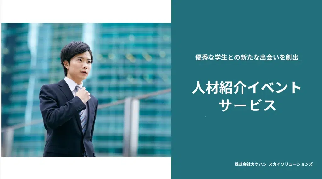「人材紹介イベントサービス」とは優秀な学生との新たな出会いを創出する人材紹介イベントです。