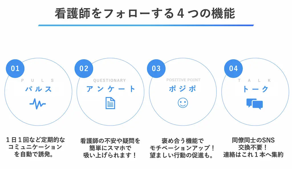 ✓ 看護師の不安や悩みをリアルタイムでキャッチ