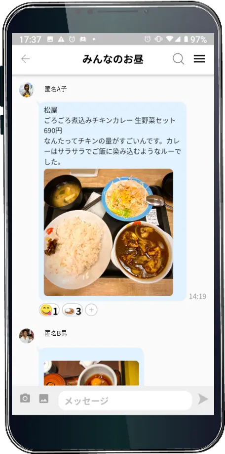 トーク機能を使えばメッセージや画像を送りあうことが可能です。ちょっとした仕事の連絡から雑談までチャットアプリとして利用可能です。